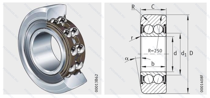 | F-239207 | ISO | Подшипник шариковый двухрядный радиально-упорный. |