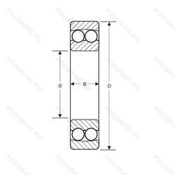 | Обозначение | Конструктивные особенности | Внутренний (d) | Наружный (D) | Ширина (B) |