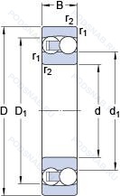 | Обозначение | Конструктивные особенности | Внутренний (d) | Наружный (D) | Ширина (B) |