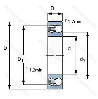 | Обозначение | Конструктивные особенности | Внутренний (d) | Наружный (D) | Ширина (B) |