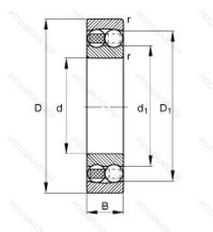 | 2301-2RS1 | Усиленные листовой сталью контактные уплотнения из акрилонитрил-бутадиенового каучука (NBR) с обеих сторон подшипника. |