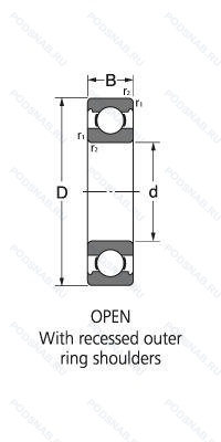 | Обозначение | Конструктивные особенности | Внутренний (d) | Наружный (D) | Ширина (B) |