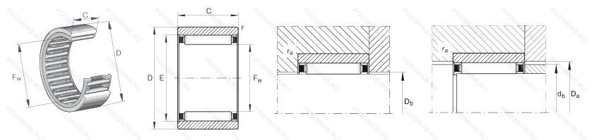 | RNA4906 2RS | ISO | Контактные уплотнения типа RS с обеих сторон игольчатого роликоподшипника. |
