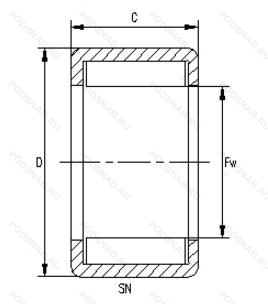 SN148 — Роликовый игольчатый подшипник, основное исполнение, производство INA.