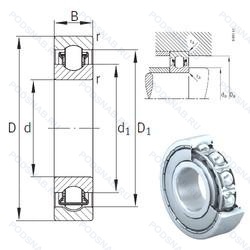 | Обозначение | Конструктивные особенности | Внутренний (d) | Наружный (D) | Ширина (B) |