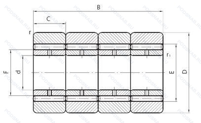 444705ХУ4 — Роликовый радиальный игольчатый четырехрядный подшипник, модификация основного исполнения 444705, выпускается производителями: EPK, ГПЗ.