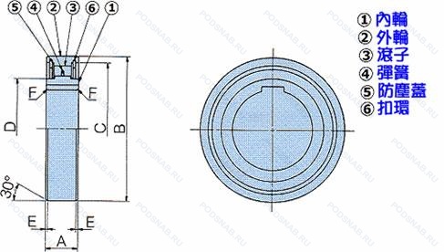 | Обозначение | Конструктивные особенности | Внутренний (d) | Наружный (D) | Ширина (B) |