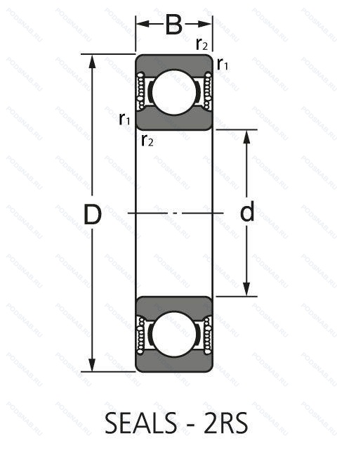 | Обозначение | Конструктивные особенности | Внутренний (d) | Наружный (D) | Ширина (B) |