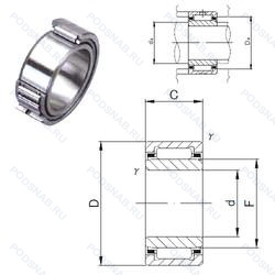 | NKI6/12 | ISO | Коническое внутреннее отверстие. Канавка под стопорное кольцо на наружном кольце подшипника. 3/4. |