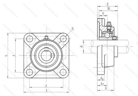 | UCF211LJ | Корпус подшипникового узла. С допуском сферического отверстия J. Подходит для корпуса диаметром до 100 мм.. |