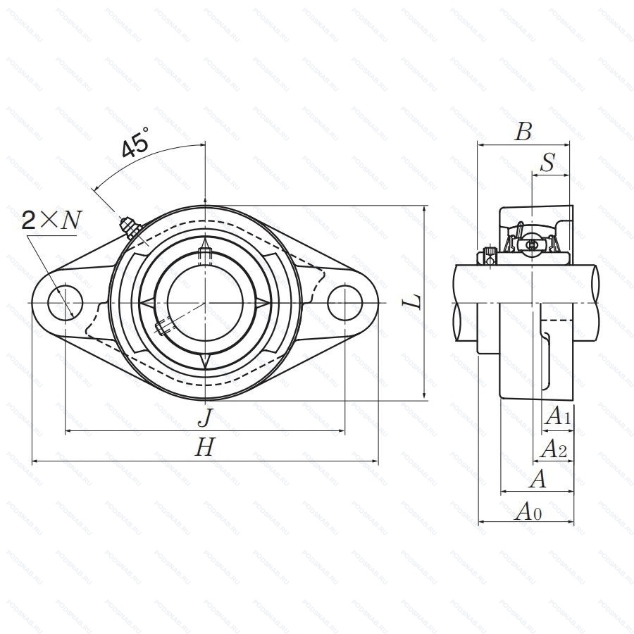 | UCFL210-30J | Корпус подшипникового узла. С допуском сферического отверстия J. Подходит для корпуса диаметром до 100 мм.. 1.7/8 Bore. |