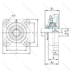 | UKF213K/H | Без закрепительной втулки. Более высокая стабильность и лучший баланс нагрузки, чем в стандартной комплектации. Для шарикоподшипниковых узлов UC/Угол установочных винтов 120° вместо 62°. |