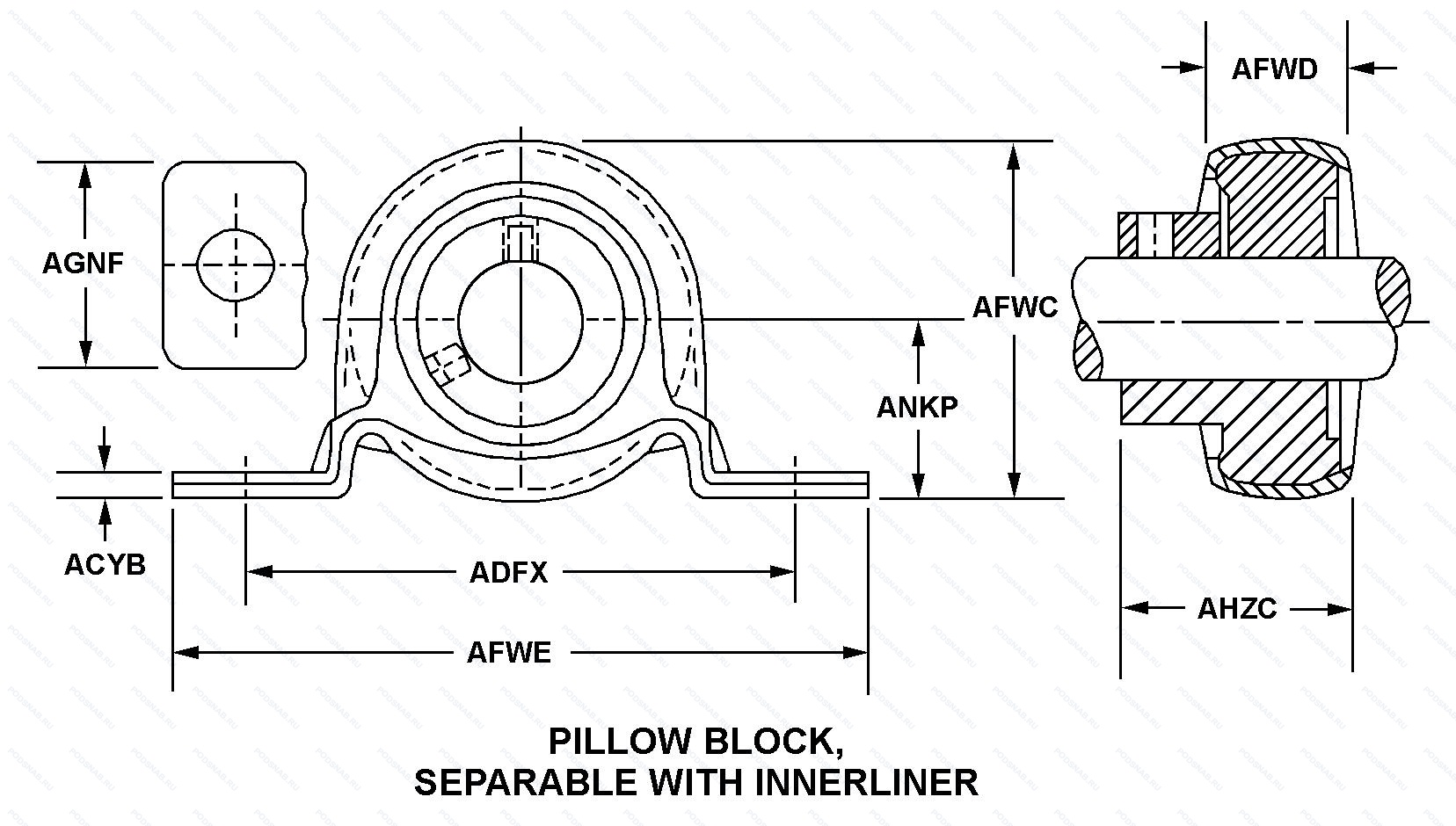 PB1 — Корпус подшипника, основное исполнение, выпускается производителями: FAFNIR, NEUTRAL, TIMKEN.