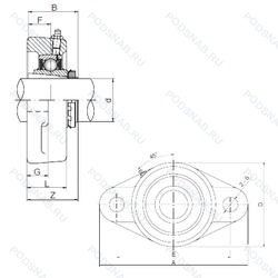 Подшипниковый узел с овальным фланцем, фиксация с помощью закрепительной втулки.