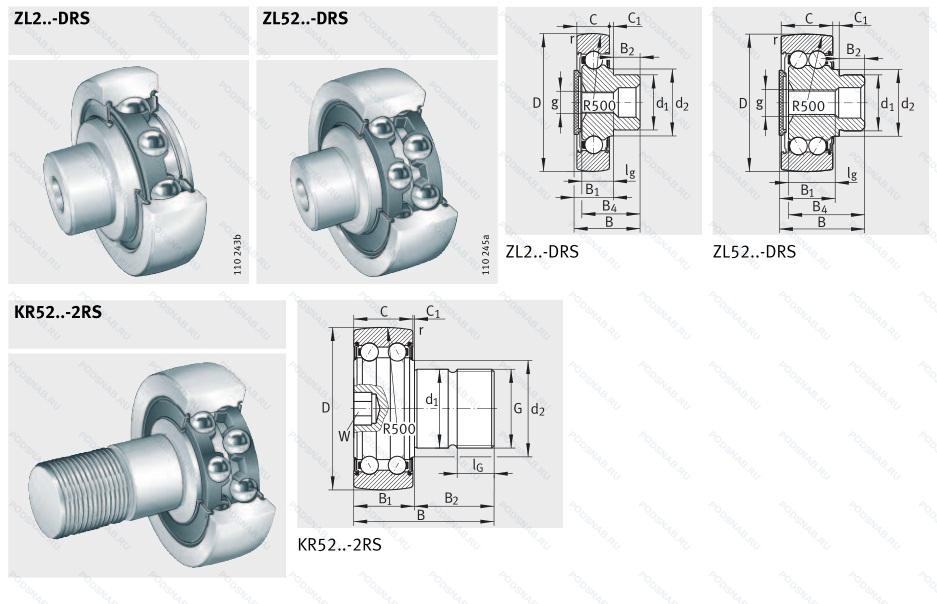 | ZL5202KRDU | Резиновые уплотнения на каждой стороне подшипника. Диапазон температур -30℃/+120℃. |