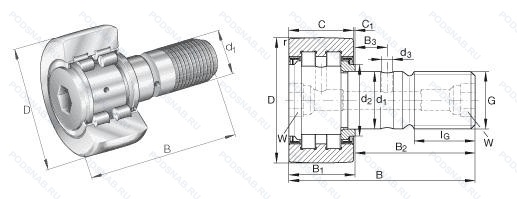 PWKR40-2RS-RR-XL — Кулачковый ролик толкатель, модификация основного исполнения PWKR402RS, производство INA.