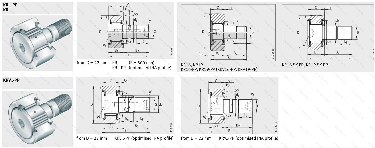 Модификации кулачкового ролика KR19C.2RS.SK — это измененное основное конструктивное исполнение KR19, основные размеры (8x19x32) не отличаются.
