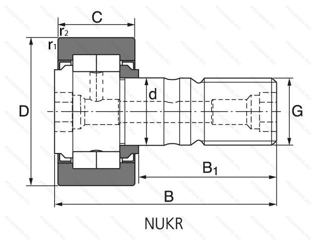 NUKR62 — Кулачковый ролик толкатель, основное исполнение, выпускается производителями: FAG, IDC/INTERPRECISE DONATH GMBH, IKO, NEUTRAL, NIS, NKE, NTN, TORRINGTON, Подшипники NBS.