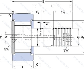 KRV30-B — Кулачковый ролик толкатель, модификация основного исполнения KRV30, выпускается производителями: INA, SKF.