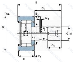 Опорный ролик, с цапфой, с корончатым наружным диаметром (две дорожки цилиндрических роликов), измененная или модифицированная внутренняя конструкция при неизменных основных размерах.