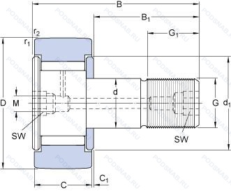 KRV26B — Кулачковый ролик толкатель, модификация основного исполнения KRV26, выпускается производителями: INA, SKF.