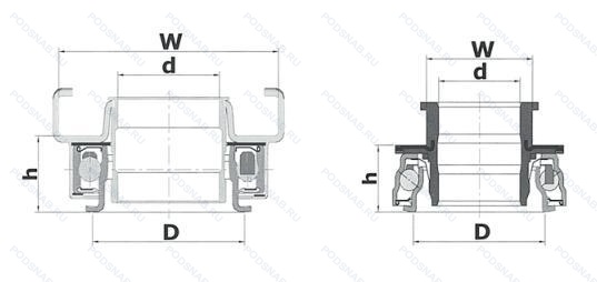 | Обозначение | Конструктивные особенности | Внутренний (d) | Наружный (D) | Ширина (B) |