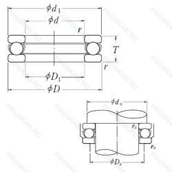 | 51334M | Подшипник с латунным сепаратором. центрированный по телам качения. |