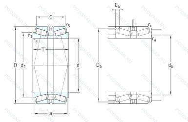 Осевой зазор в мкм, t - за которым следует цифра. обозначает общую ширину пар подшипников. расположенных «спина к спине» или «тандем», комплект из двух подшипников. согласованных для установки по о-образной схеме. число. следующее непосредственно после букв db обозначает конструкцию проставочных колец в комплекте, штампованный стальной сепаратор. центрируемый по роликам. число после j указывает на различные конструктивные исполнения сепаратора, оптимизированная геометрия и специальная обработка контактных поверхностей.