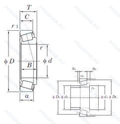 78214/78537 — однорядный конический роликовый подшипник, модификация основного исполнения 78214, выпускается производителями: KOYO, TIMKEN.