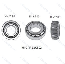 Аналог конического роликового подшипника HI-CAP32KB02 — это подшипник такого же размера dx32,Dx65,Bx18, типа и конструкции.