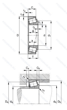 | 31310J | Дорожки качения наружного кольца. угол контакта и ширина наружного кольца в соответствии с ISO. |