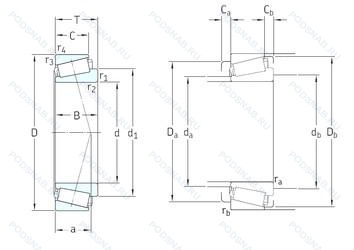 | 32238J | Дорожки качения наружного кольца. угол контакта и ширина наружного кольца в соответствии с ISO. |