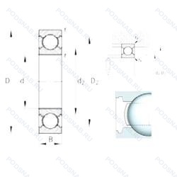 | Обозначение | Конструктивные особенности | Внутренний (d) | Наружный (D) | Ширина (B) |