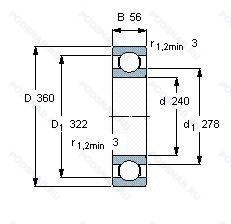 Размер подшипника: 240x360x56 мм.