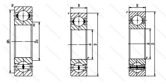 | Обозначение | Конструктивные особенности | Внутренний (d) | Наружный (D) | Ширина (B) |
