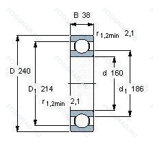 Размер подшипника: 160x240x38 мм.