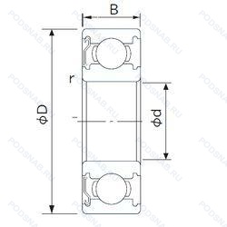 | Обозначение | Конструктивные особенности | Внутренний (d) | Наружный (D) | Ширина (B) |