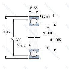 | 240W | Шариковый радиальный однорядный подшипник. Максимальная грузоподъемность. | 200.00 | 360.00 | 58.00 |
