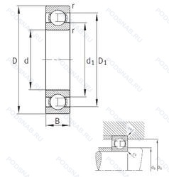| Обозначение | Конструктивные особенности | Внутренний (d) | Наружный (D) | Ширина (B) |