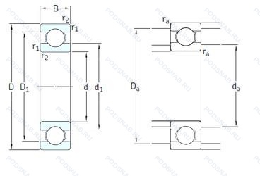 | Обозначение | Конструктивные особенности | Внутренний (d) | Наружный (D) | Ширина (B) |