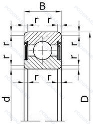 | Обозначение | Конструктивные особенности | Внутренний (d) | Наружный (D) | Ширина (B) |