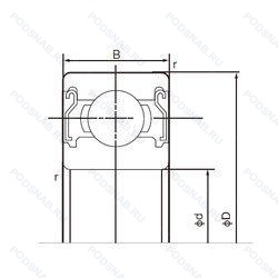 | Обозначение | Конструктивные особенности | Внутренний (d) | Наружный (D) | Ширина (B) |