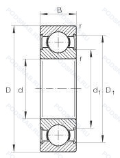 | 6022-2RS1 | Усиленные листовой сталью контактные уплотнения из акрилонитрил-бутадиенового каучука (NBR) с обеих сторон подшипника. |