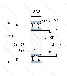 | 62/22-2RS1 | ISO | Усиленные листовой сталью контактные уплотнения из акрилонитрил-бутадиенового каучука (NBR) с обеих сторон подшипника. |