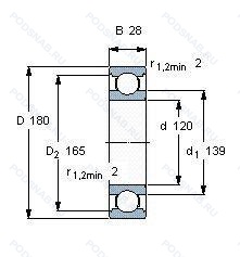 Размер подшипника: 120x180x28 мм.