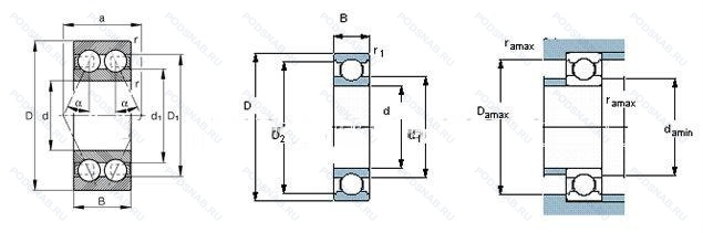 | Обозначение | Конструктивные особенности | Внутренний (d) | Наружный (D) | Ширина (B) |