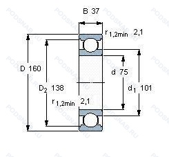 Размер подшипника: 75x160x37 мм.