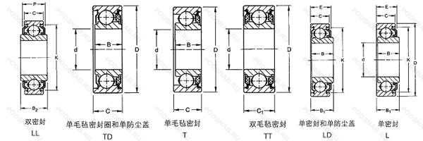 | 39KTT | Тройные манжетные уплотнения с обеих сторон подшипника (Т-образное уплотнение). |