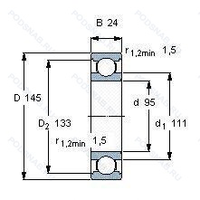 Размер подшипника: 95x145x24 мм.