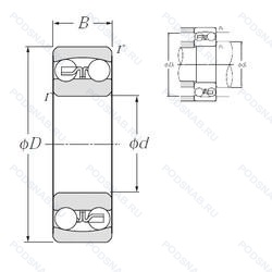 | Обозначение | Конструктивные особенности | Внутренний (d) | Наружный (D) | Ширина (B) |